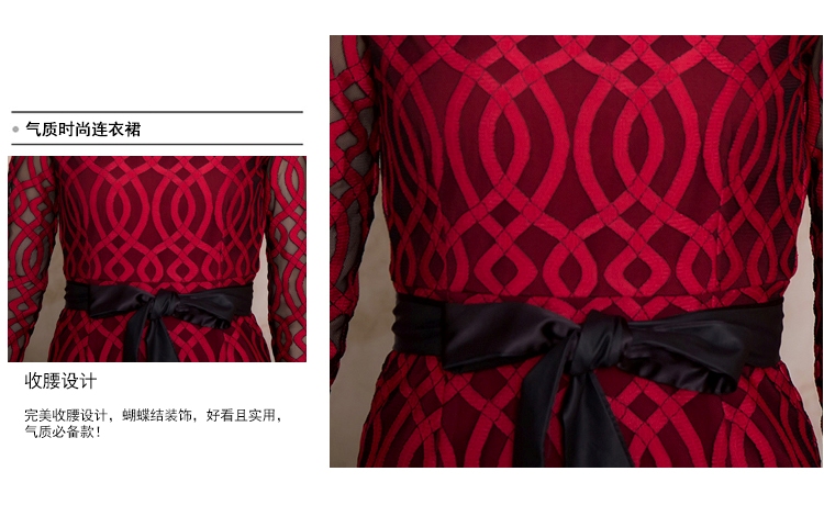 韩版女装性感透视立领长袖包臀蕾丝连衣裙